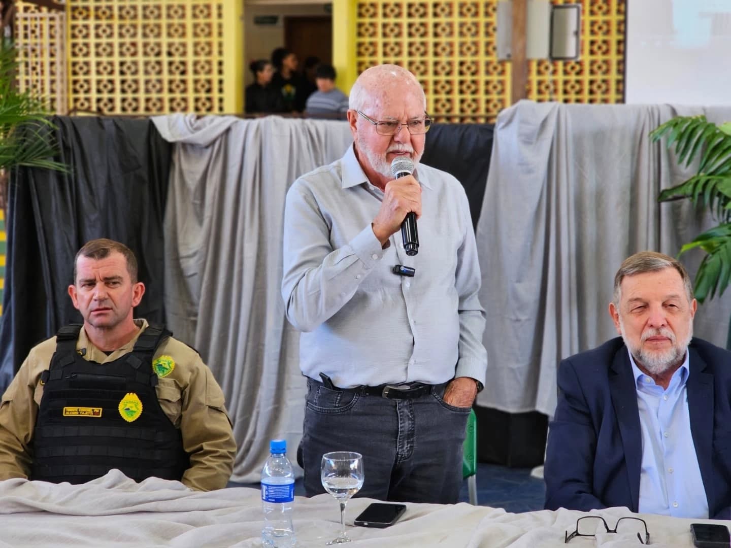 Participaram da solenidade que apresentou essas novidades, que trazem mais saúde e qualidade de vida aos usuários dos serviços da APAE, Alexandre Botareli, presidente da Federação das APAEs do Estado do Paraná (FEAPAES-PR); Neusa de Sá, representante da Federação Nacional das APAEs (FENAPAES); Eduardo Gazzi, presidente da APAE de Rolândia e coordenador regional das APAEs da região de Londrina, o senador Flávio Arns, o prefeito Ailton Maistro, a primeira-dama Ana Maria Mungo Maistro, o vice-prefeito Horácio Negrão, os deputados federais Luiz Carlos Hauly e Luiza Canziani, os deputados estaduais Cobra Repórter e Pedro Paulo Bazana, o comandante do 15º Batalhão da Polícia Militar, tenente-coronel Alvaro Tajetti, os vereadores Guilherme Spanguemberg (presidente da Câmara), Gesiel Araújo, José Luis Polvani, Ronaldo Bifinho e Rodrigão, o vereador de Londrina – Santão, o presidente do Rotary José Gregório Diniz, a equipe da APAE, servidores municipais, alunos, familiares dos alunos, convidados e a comunidade.