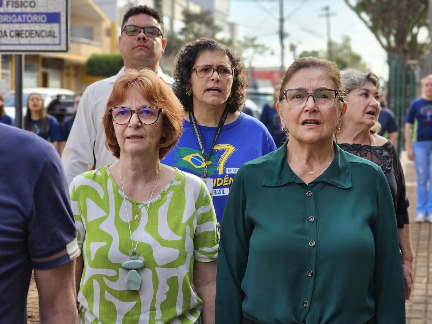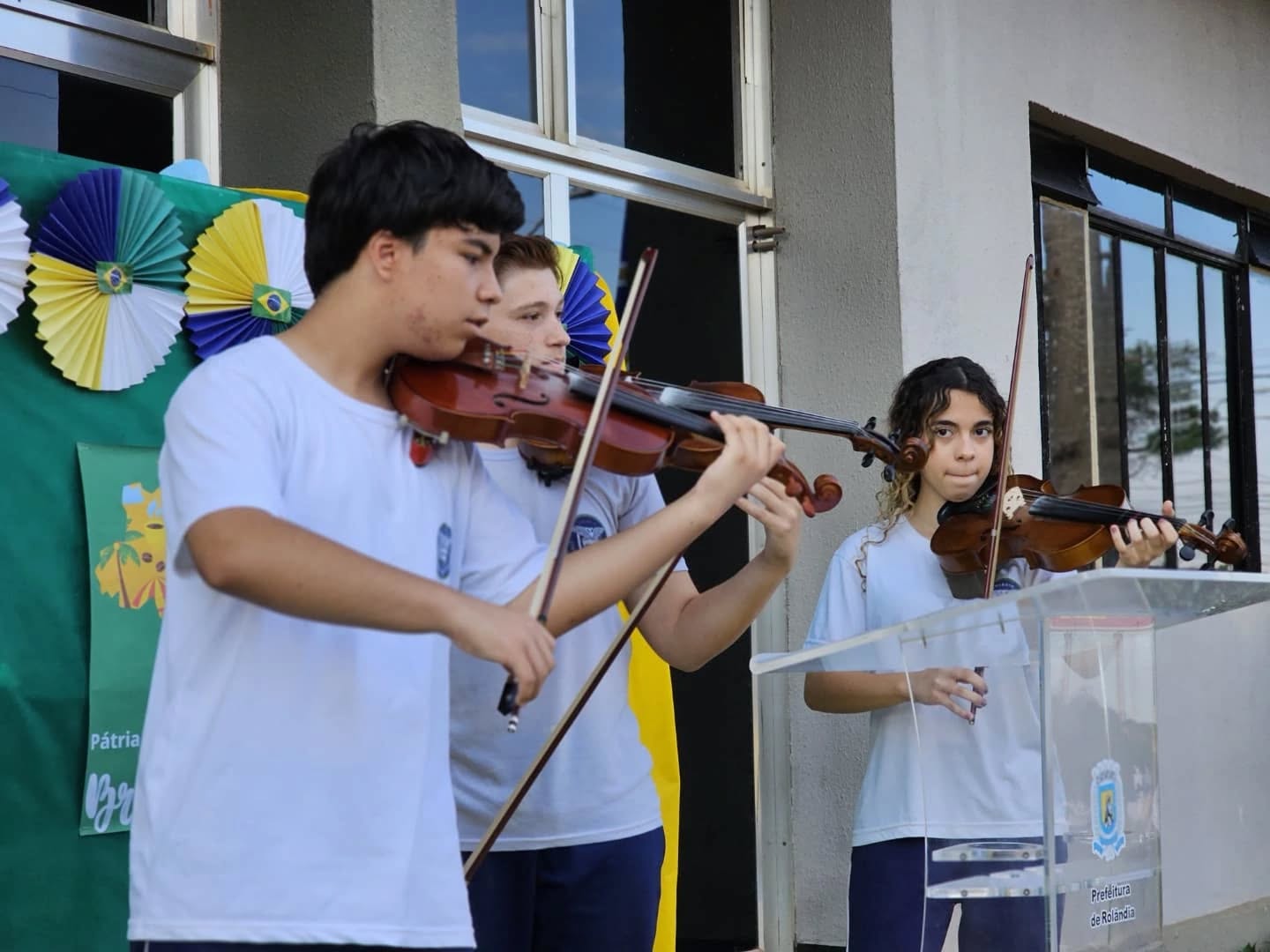 Nesta sexta-feira, dia 5, teve momento cívico, com hasteamento das bandeiras e execução dos hinos do Brasil, do Paraná e de Rolândia.