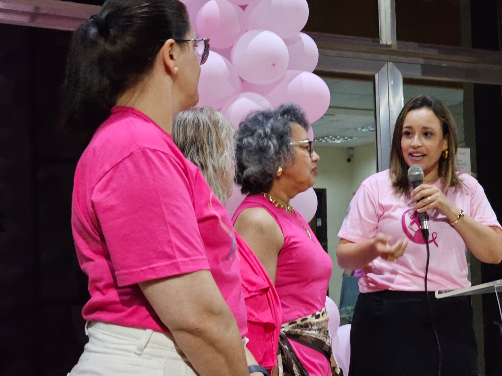 Em seguida, o público foi convidado a visitar uma exposição, que ficará ao longo do mês, no saguão da Prefeitura, com fotos com quatro mulheres que venceram o câncer de mama.