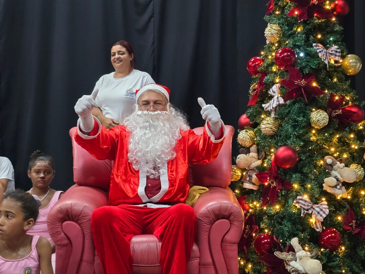 No final, até Papai Noel apareceu para interagir com os presentes.