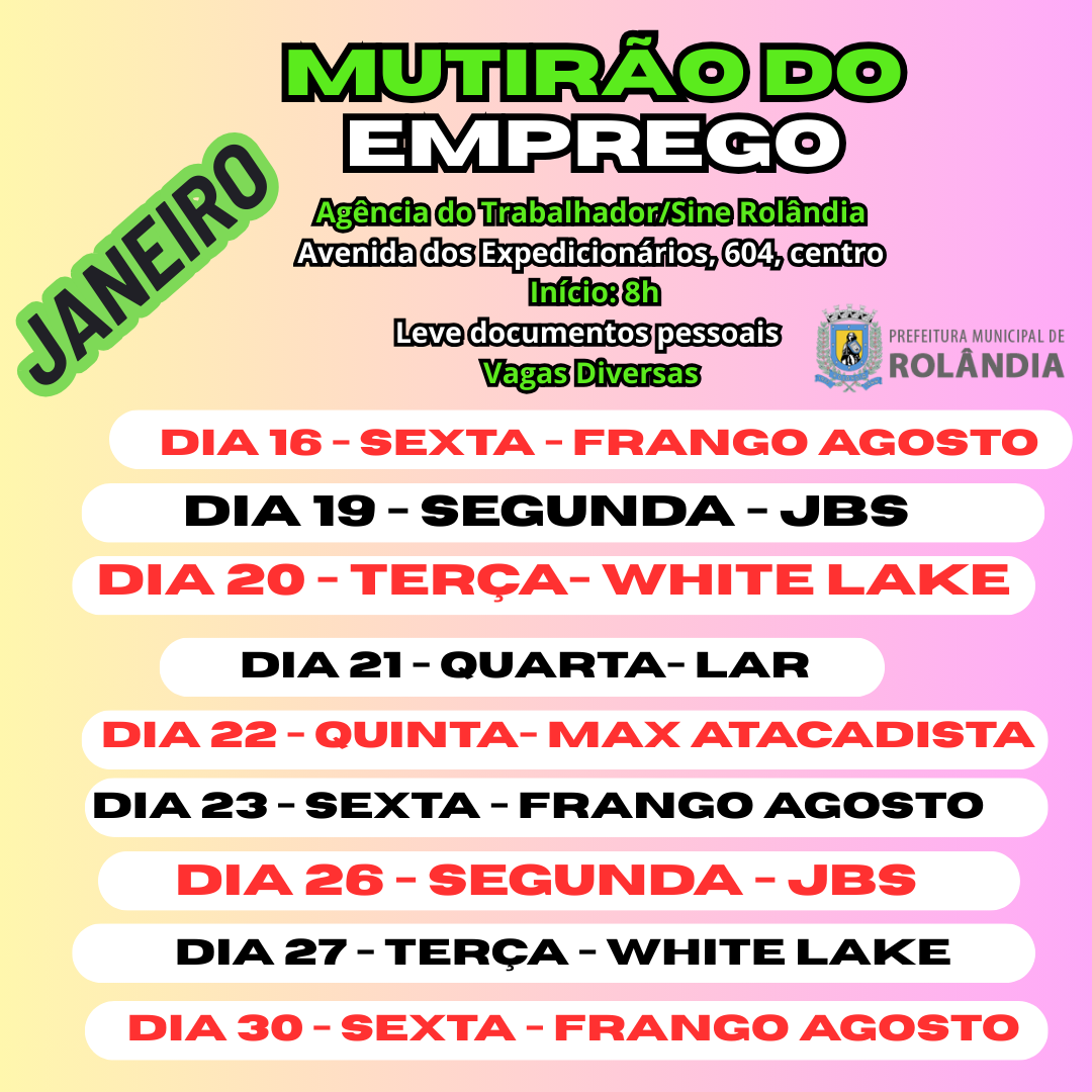 A secretaria de Desenvolvimento Econômico, por meio da Agência do Trabalhador/SINE, informa que o mês de janeiro está com diversas oportunidades de emprego, em muitas áreas e em variadas vagas.