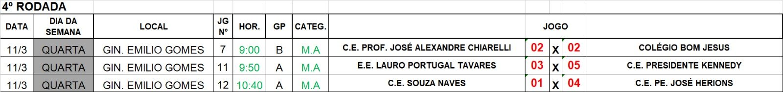 Confira o Boletim Oficial 4, com a tabela, classificação e os próximos compromissos - em anexo.