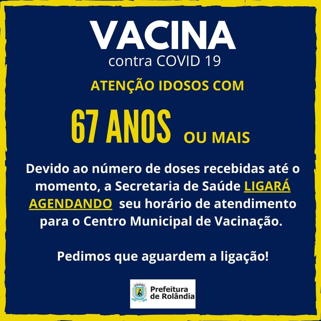 A Secretaria de Saúde informa que nesta quarta-feira (31/03) não teremos Drive Thru para vacinação.Devido a quantidade de doses em estoque, os *idosos de 67 anos ou mais serão agendados para o Centro Municipal de Vacinação*.*Pedimos que aguard...