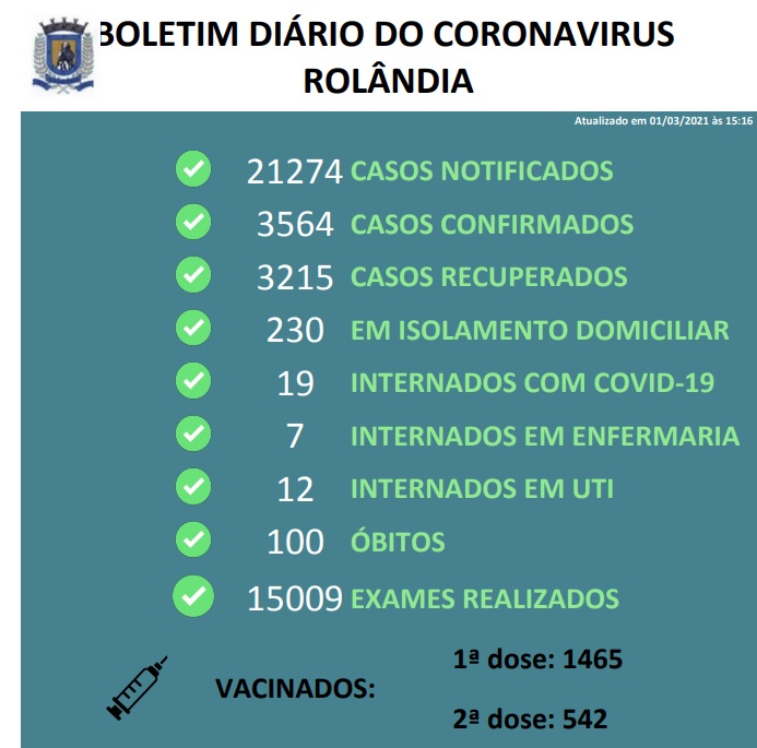 A Secretaria Municipal de Saúde recebeu 930 doses de vacinas contra a covid-19. Chegaram 200 doses de Coronavac/Butantã e 730 doses de Oxford/Astra Zêneca.Serão imunizados "Trabalhadores no setor de saúde" e "idosos entre 80 a 89 anos".A aplica...