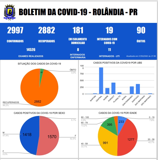 Com pesar e solidariedade aos familiares e amigos, a Secretaria de Saúde de Rolândia informa que uma paciente do sexo masculino veio a óbito por covid-19. Desse modo, Rolândia registra 90 vidas que se perderam em virtude da doença. O paciente ti...