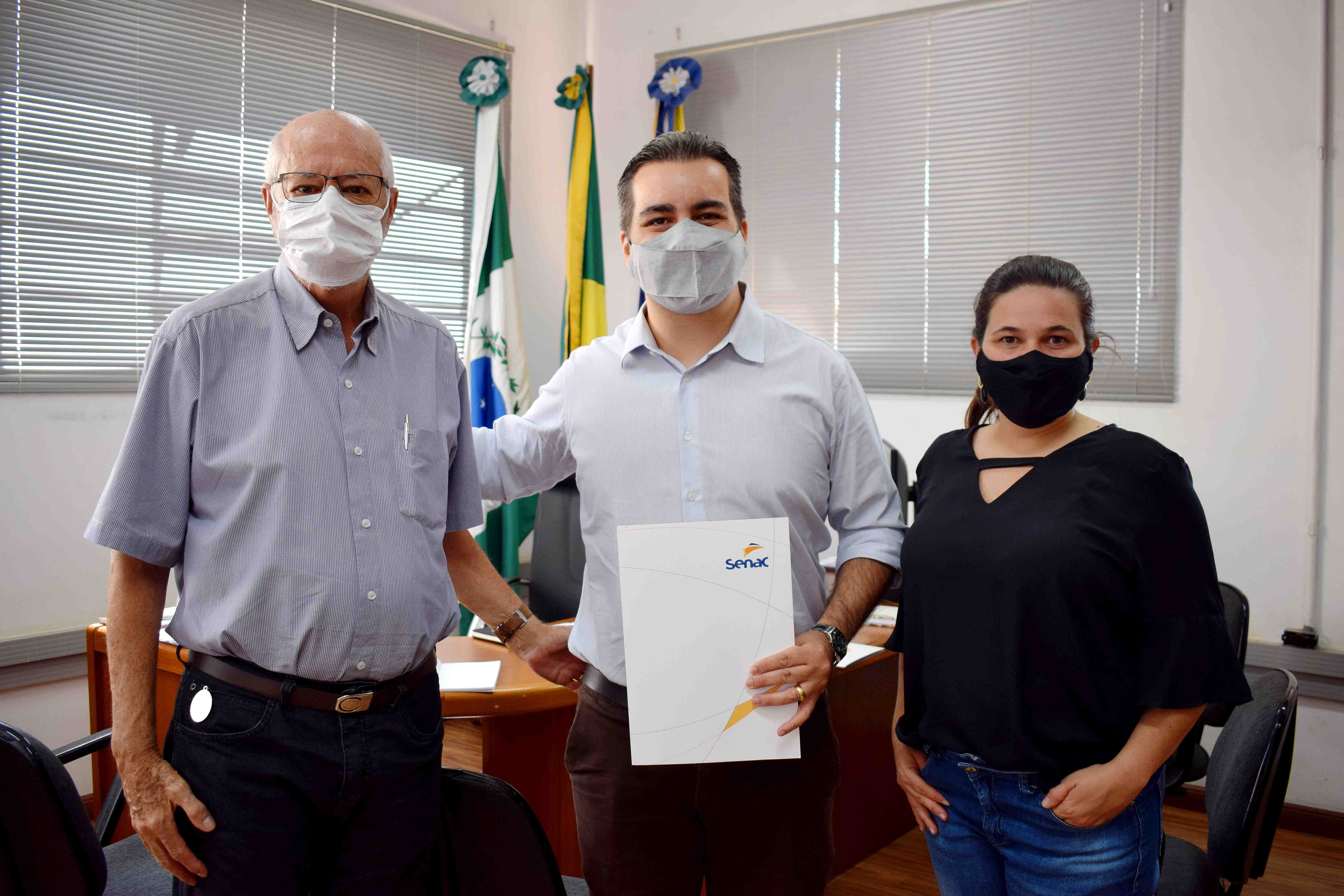 O Prefeito Ailton Maistro recebeu na manhã desta quinta-feira, em seu gabinete, o Gerente Executivo do Serviço Nacional de Aprendizagem Comercial (SENAC), em Londrina, Thiago dos Santos Ferreira e a Técnica de Relacionamento com o Mercado, Maris...