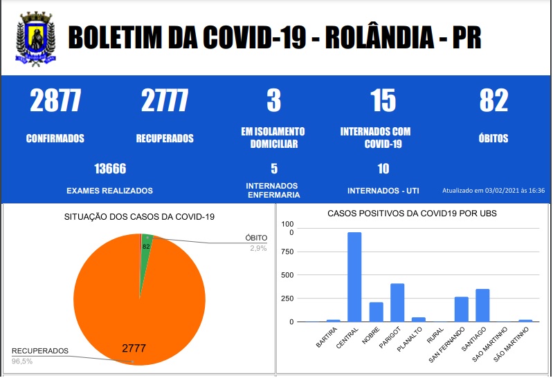 ROLÂNDIA REGISTRA O 82º ÓBITO DE PACIENTE COM COVIDCom pesar e solidariedade aos familiares e amigos, a Secretaria de Saúde de Rolândia informa o 82º óbito de paciente da cidade com Covid-19. Trata-se de uma mulher, 84 anos. Ela tinha diabetes...