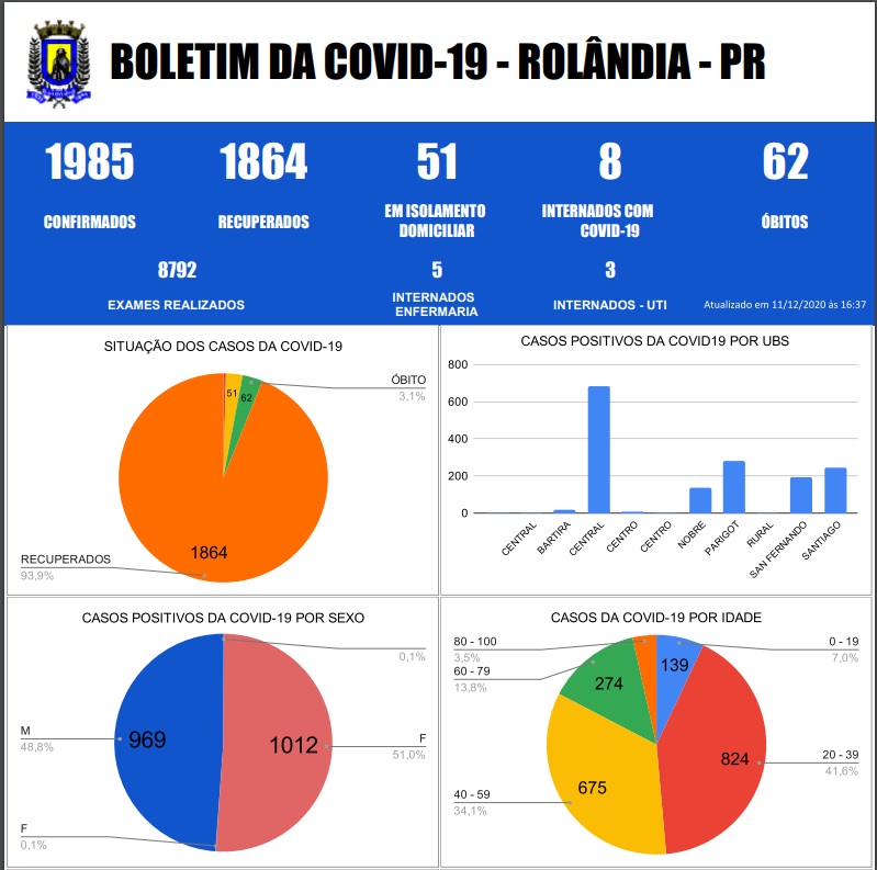 Com pesar e solidariedade aos familiares e amigos, a Secretaria Municipal de Saúde comunica que foi registrado o 62 óbito de paciente de Rolândia em decorrência de Covid-19. Trata-se de uma mulher, 84 anos, hipertensa e tinha doença pulmonar cr...