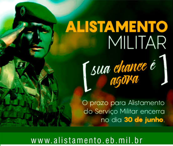 Os jovens que completam 18 anos em 2020, ou seja, nascidos em 2002, devem fazer o Alistamento Militar, que vai até o dia 30 de junho de 2020 e pode ser feita pelo site www.alistamento.eb.mil.br . Até aqui, 172 jovens já se alistaram, de um total d...