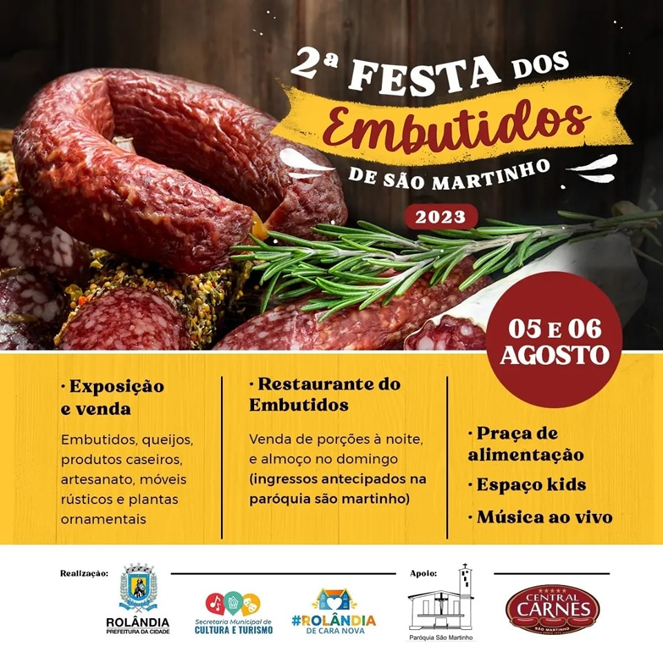 FESTA DOS EMBUTIDOS NESTE FINAL DE SEMANA! VENHA E TRAGA A FAMÍLIA!A secretaria de Cultura e Turismo convida para a 2º Festa dos Embutidos, no distrito de São Martinho.Evento com entrada gratuita, no pátio da Igreja Católica do distrito, na aven...