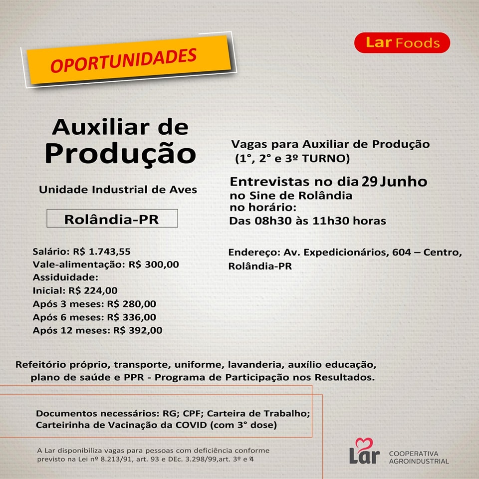 MUTIRÃO DO EMPREGO NESTA QUINTA A secretaria de Desenvolvimento Econômico, por meio da Agência do Trabalhador/SINE, informa que nesta quinta, dia 29, das 8h às 11h30, haverá mutirão de emprego, da Lar Foods.Interessados devem comparecer com doc...