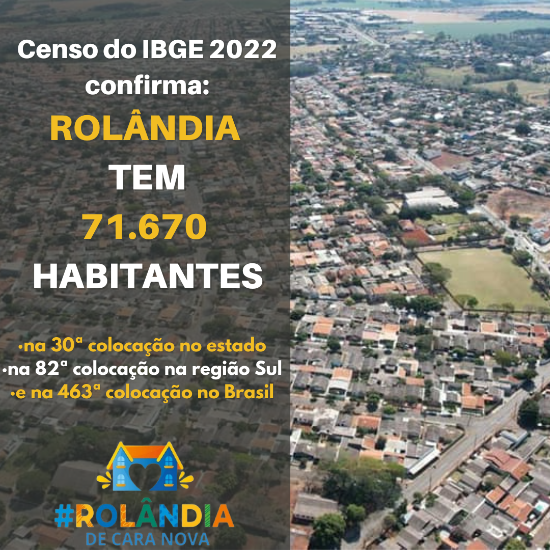 CENSO REGISTRA 71.670 HABITANTES EM ROLÂNDIAO Instituto Brasileiro de Geografia e Estatística (IBGE) divulgou o resultado do Censo 2022, que fez a contagem populacional das cidades brasileiras. Na comparação com o Censo de 2010, Rolândia teve u...