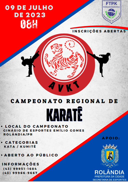 ROLÂNDIA RECEBE CAMPEONATO REGIONAL DE KARATÊA secretaria de Esportes apoia a realização do "Campeonato Regional de Karatê", promovido pela Associação Vera Karatê Dô, da Sensei Vera Lúca Araújo, e que vai acontecer no complexo do Ginásio ...