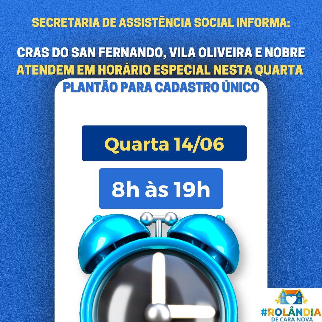 CRAS ESTARÃO DE PLANTÃO NESTA QUARTA...