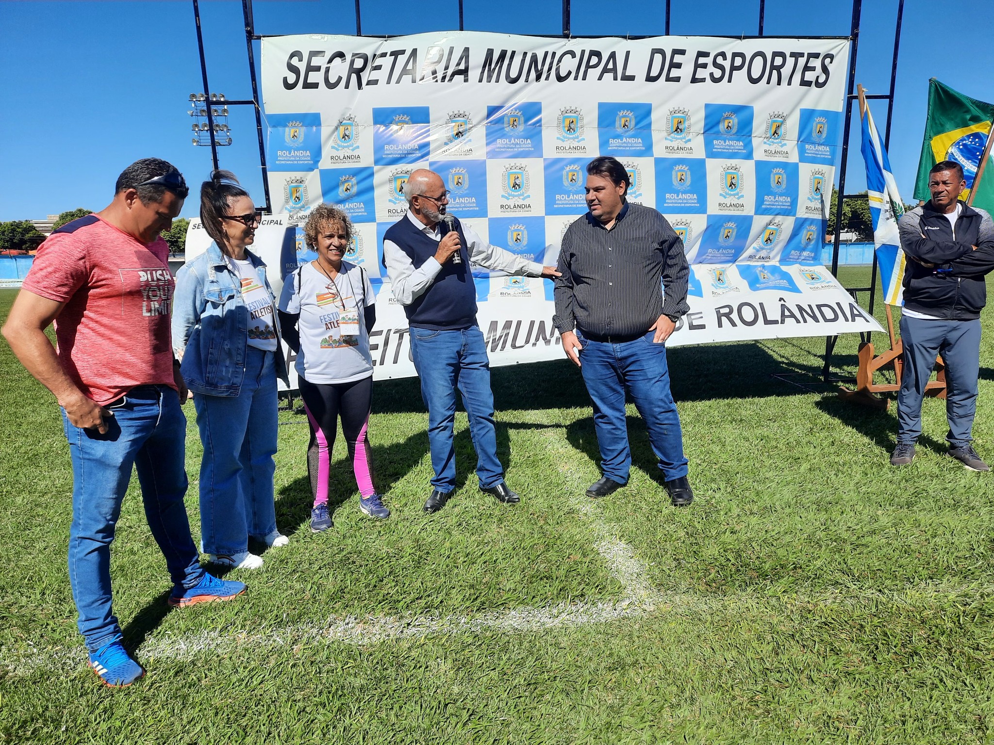 FESTIVAL DE ATLETISMO REÚNE ALUNOS DA REDE MUNICIPAL NO ESTÁDIO ERICH GEORGO prefeito Ailton Maistro, o vice-prefeito Márcio Vinícius, o secretário de Esportes, Flávio Marques, o secretário de Desenvolvimento Econômico, Horácio Negrão e a d...