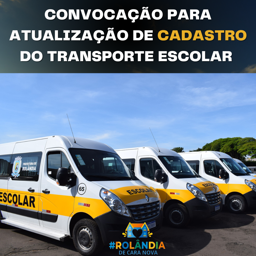 CONVOCAÇÃO PARA ATUALIZAÇÃO DE CADASTRO DO TRANSPORTE ESCOLARA secretaria de Educação convoca pais ou responsáveis por alunos que utilizam o serviço de transporte escolar, da Prefeitura de Rolândia, para que procurem imediatamente as escolas...
