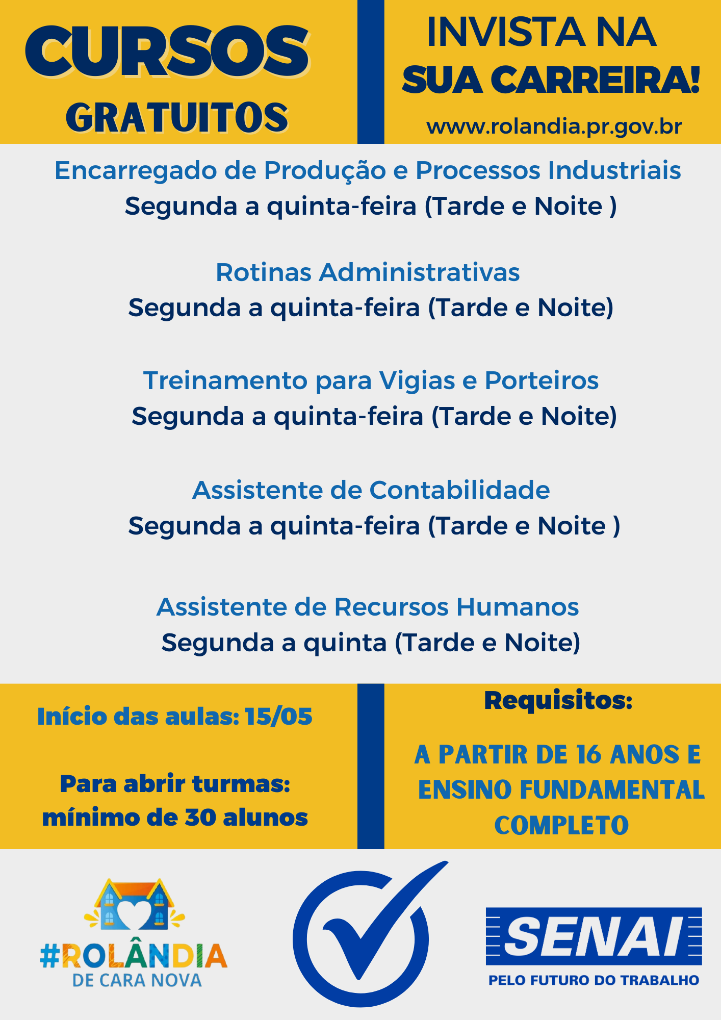 CURSOS GRATUITOS!A secretaria de Desenvolvimento Econômico, em parceria com o Senai, oferta cursos gratuitos, com certificado reconhecido em todo país.Requisitos: a partir de 16 anos e ensino fundamental completoAproveite!Faça sua inscrição: htt...