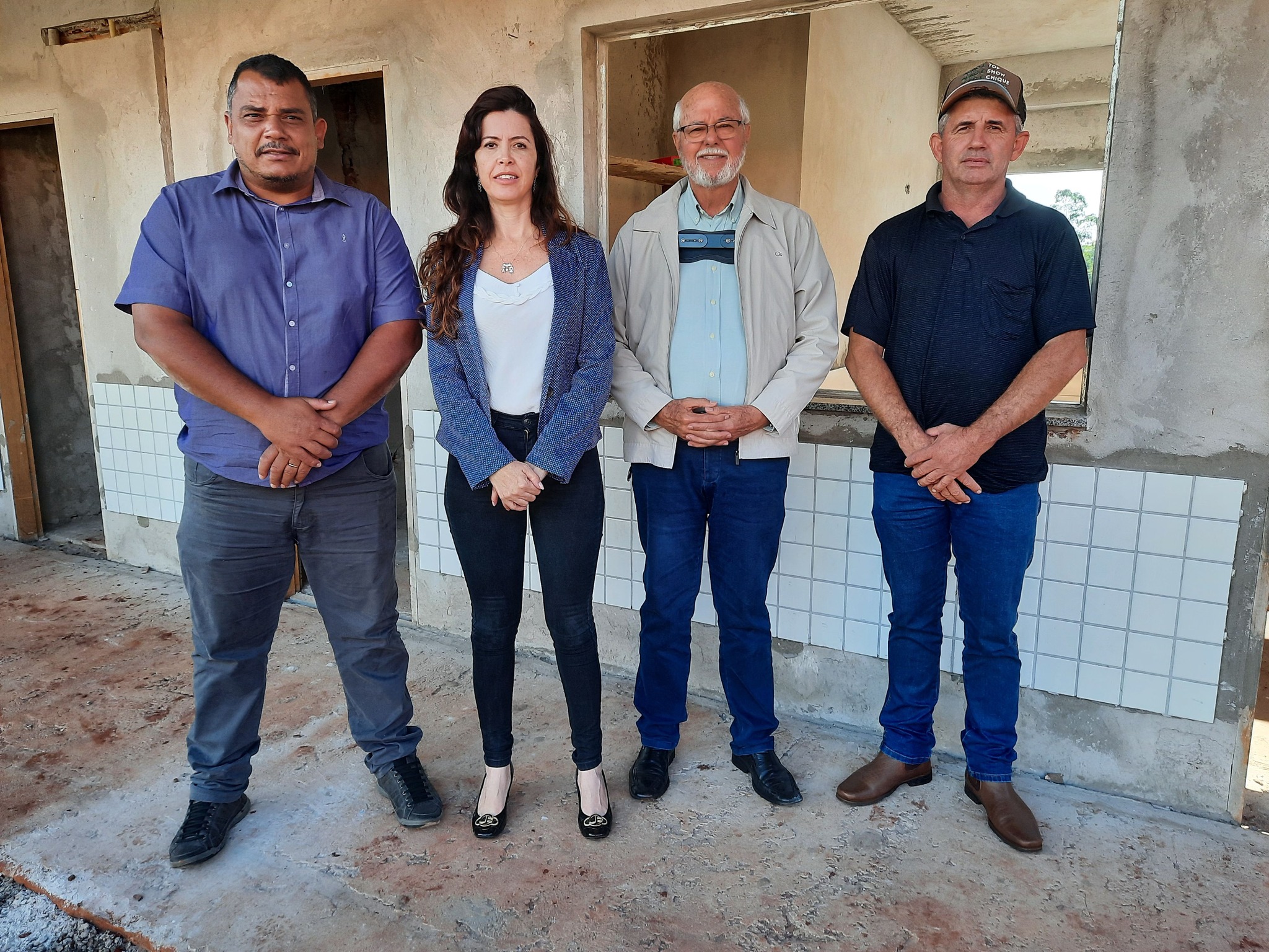 PREFEITO E VEREADORES CONFEREM ANDAMENTO DE OBRA DE ESCOLA NO ÁIDA NOGUEIRAO prefeito Ailton Maistro, a secretária de educação, Leise Camargo, os vereadores Vilmar Boy e Sandro Leonardi conferiram o andamento das obras da nova escola localizada n...