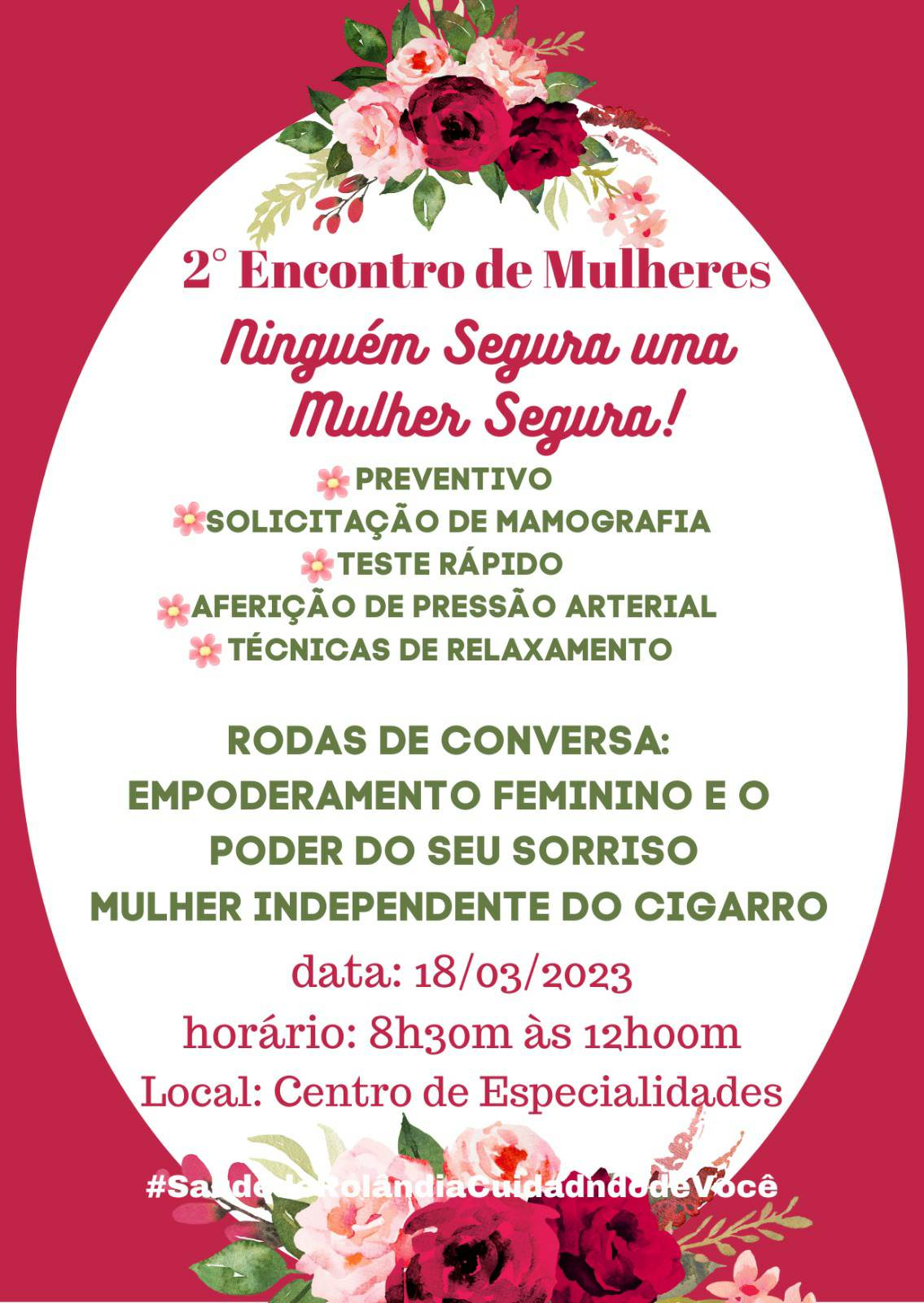 MULHER, NESTE SÁBADO, VENHA CUIDAR DA SUA SAÚDE! A secretaria de Saúde convida todas as mulheres da cidade para que participem, neste sábado, dia 18 de março, das 8h30 às 12h, no Centro de Especialidades, rua Duque de Caxias, 331, centro, do "2...
