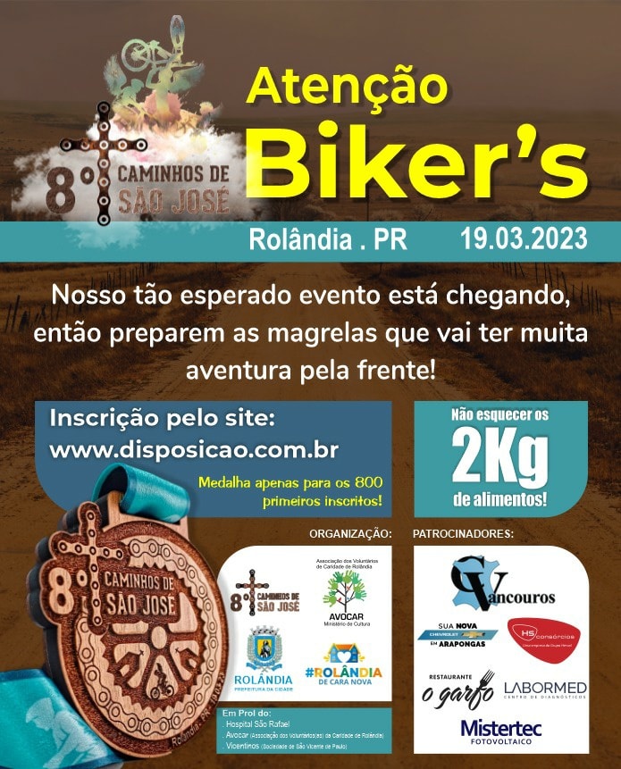 Caminho de São José 2023A secretaria de Cultura e Turismo informa sobre o "8° Pedal Caminhos de São José".Os ciclistas sairão da *Igreja Matriz São José*, passando pela *Paróquia São Paulo Apóstolo* (Vila Operária), indo em direção a es...