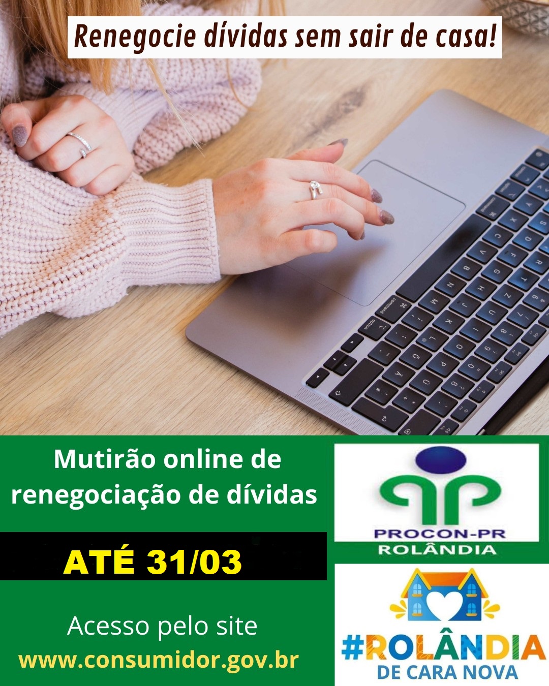 PROCON ROLÂNDIA PARTICIPA DO MUTIRÃO ONLINE DE RENEGOCIAÇÃO DE DÍVIDASO Procon de Rolândia, órgão da Procuradoria Jurídica do Município de Rolândia, informa que até o dia 31 de março de 2023, participa de um mutirão online de renegocia...