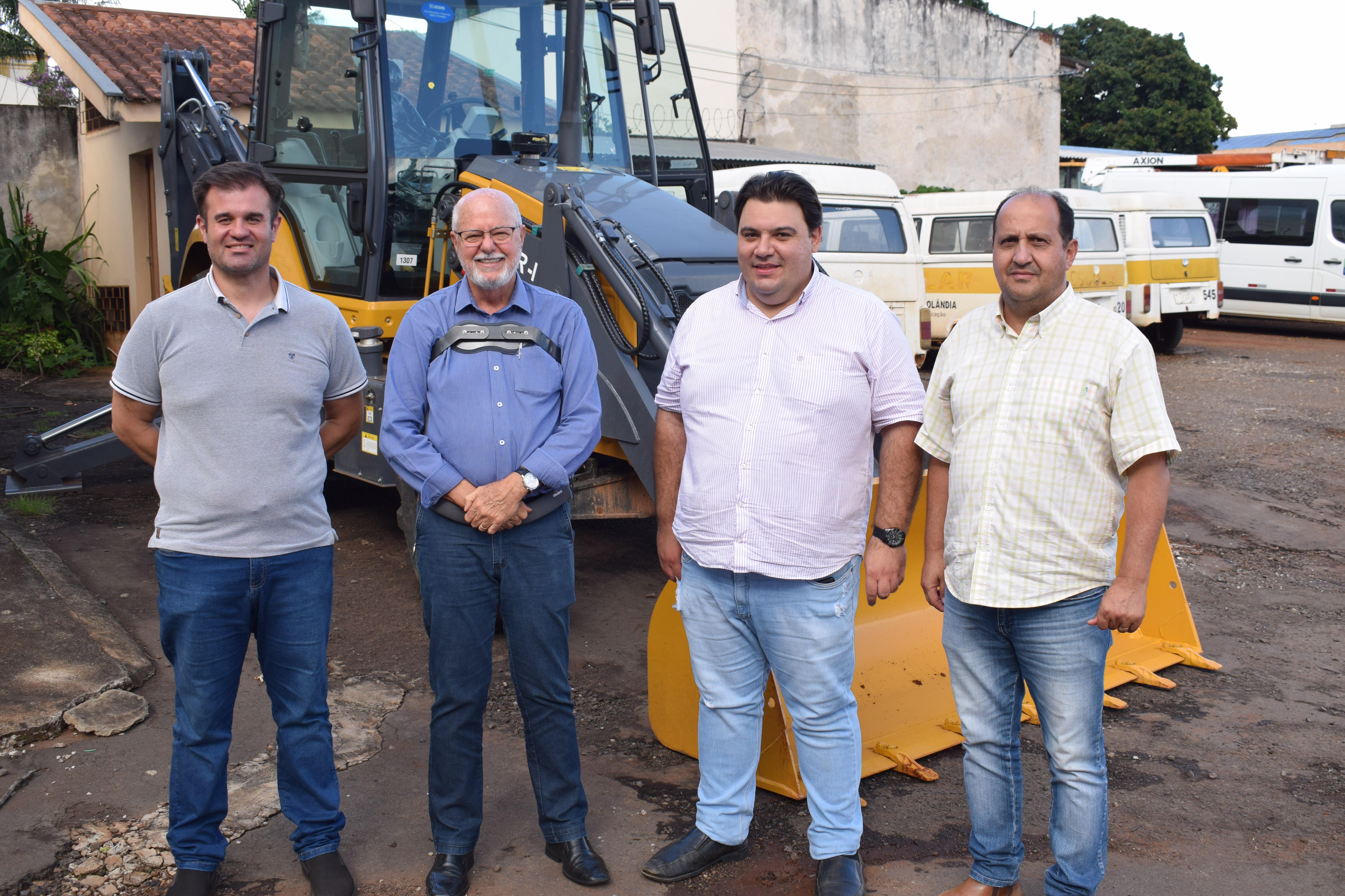 MUNICÍPIO RECEBE MAIS UMA RETROESCAVADEIRA PARA MELHORAR AS ESTRADAS RURAISO prefeito Ailton Maistro, o vice-prefeito Márcio Vinícius, o secretário de Infraestrutura José Luiz Polvani e o secretário de Agricultura e Meio Ambiente Audinil Maring...