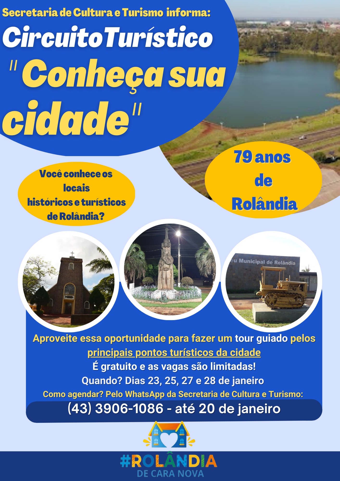 Programação Cultural em comemoração aos 79 anos de emancipação política de Rolândia! A secretaria de Cultura e Turismo lança o Circuito Turístico "Conheça sua cidade". Você conhece os locais históricos e turísticos de Rolândia? Ainda...