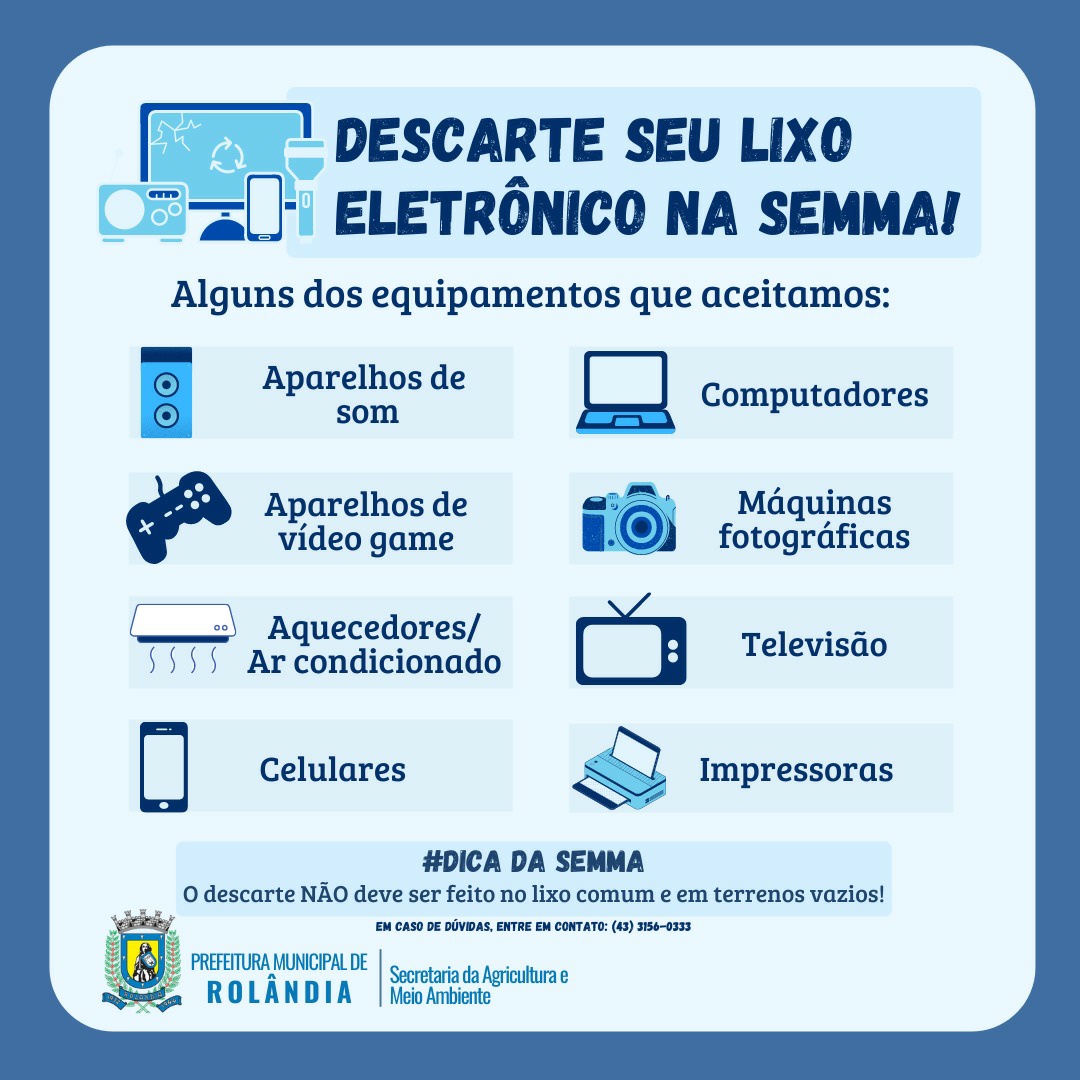 DESCARTE LIXO ELETRÔNICO NA SEDE DA SECRETARIA DE AGRICULTURA E MEIO AMBIENTEEm parceria com a Ong E-letro, a Secretaria de Agricultura e Meio Ambiente é um ponto de arrecadação de lixo eletrônico.Para descartar na Secretaria, basta levar, de se...