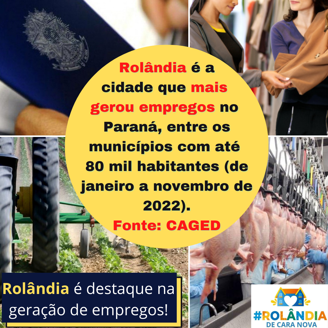DAS CIDADES DE ATÉ 80 MIL HABITANTES, ROLÂNDIA É A PRIMEIRA COLOCADA ENTRE QUE MAIS GERARAM EMPREGOS NO PARANÁOs dados do Cadastro Geral de Empregados e Desempregados (Novo Caged), divulgados, nesta quarta-feira (28), pelo ministério do Trabalho...