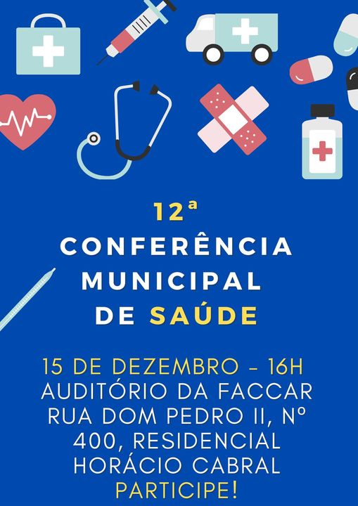 CONFERÊNCIA DE SAÚDE NO DIA 15 DE DEZEMBROO Conselho Municipal de Saúde (CMS) de Rolândia e a Secretaria Municipal de Saúde, CONVOCAM os Delegados eleitos nas Pré-Conferências Municipais e os atuais Conselheiros Municipais de Saúde a particip...