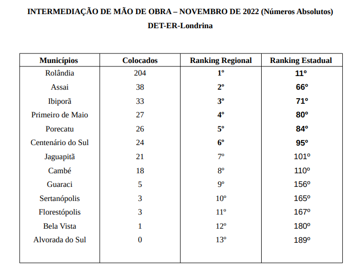 SINE ROLÂNDIA FECHA NOVEMBRO COMO O 11º MAIS EFICIENTE DO PARANÁ; NO ANO, SÃO MAIS DE 2.300 COLOCAÇÕESSegundo dados da Secretaria Estadual de Justiça, Família e Trabalho (SEJUF), a Agência do Trabalhador/SINE Rolândia, da Secretaria Municip...