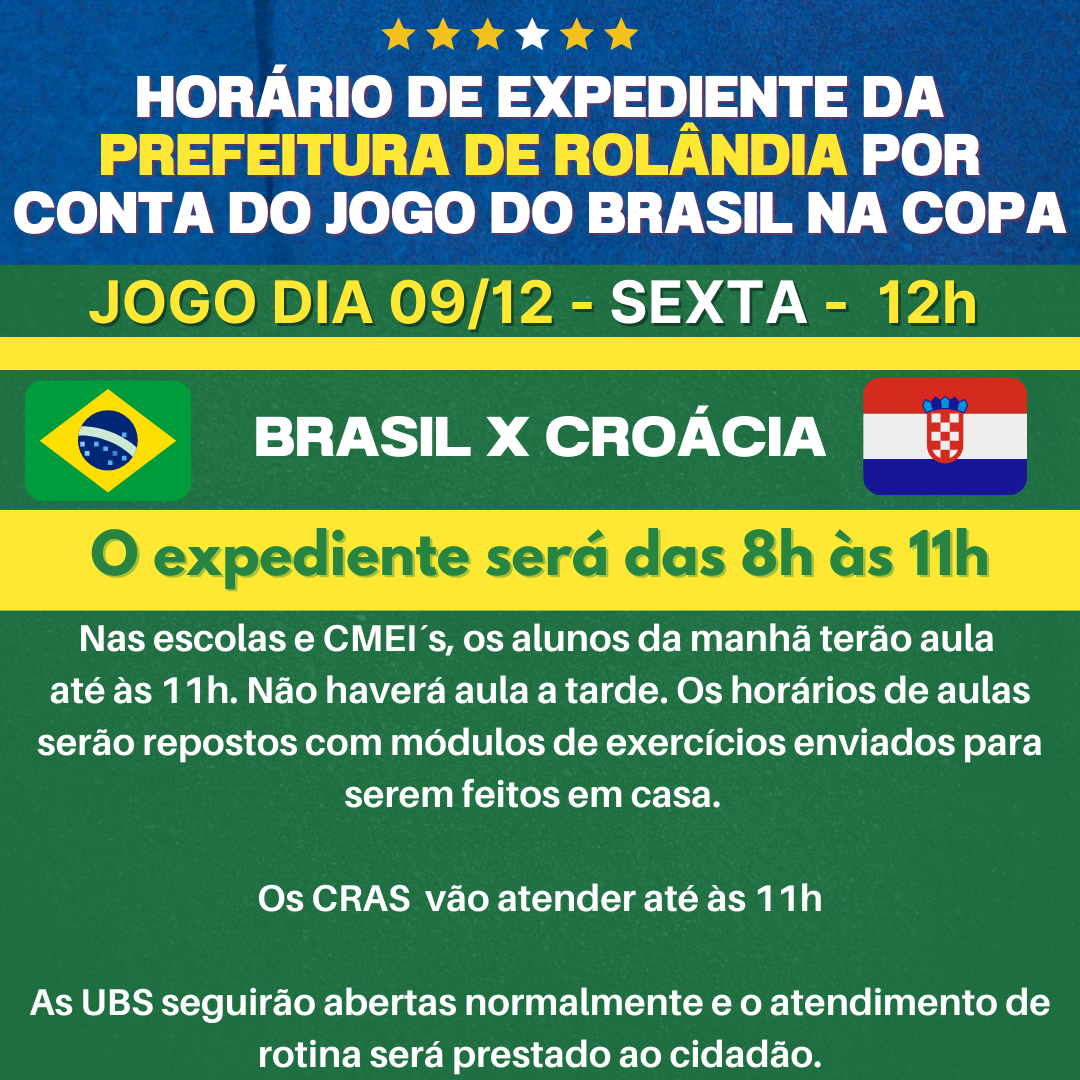 JOGO DO BRASIL NA COPA DO MUNDO ALTERA HORÁRIO DE EXPEDIENTE DA PREFEITURA DE ROLÂNDIAPor meio do Decreto Municipal 542, a Prefeitura de Rolândia faz adequações em seu horário de atendimento ao público, devido ao jogo da Copa do Mundo Fifa 202...