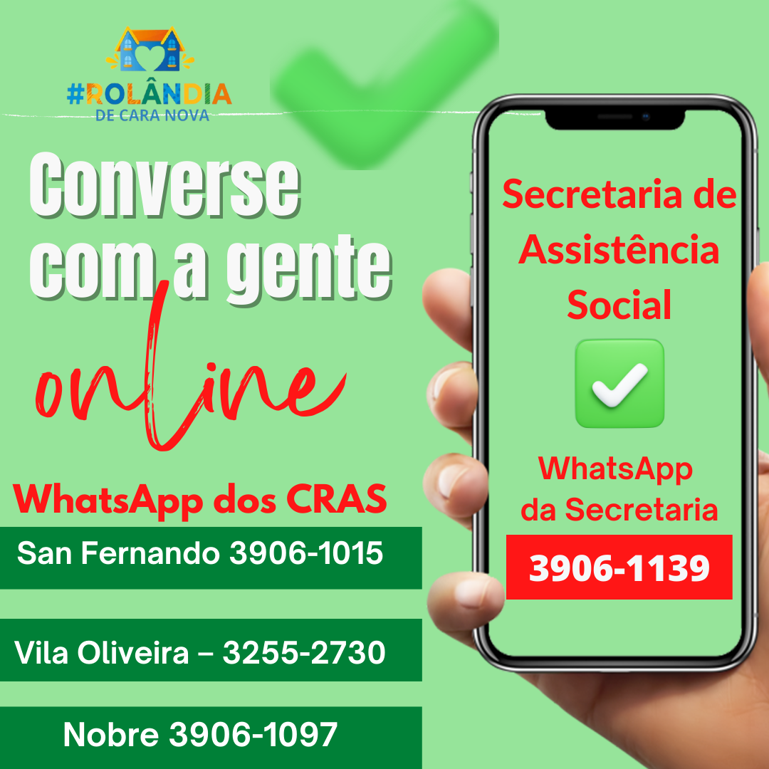 WHATS APP DA SECRETARIA DE ASSISTÊNCIA SOCIAL E DOS CRASA secretaria de Assistência Social informa que pode ser contactada pelo WhatsApp 3906-1139. A população também pode consultar os CRAS por essa plataforma.WhatsApp dos CRAS:San Fernando 390...