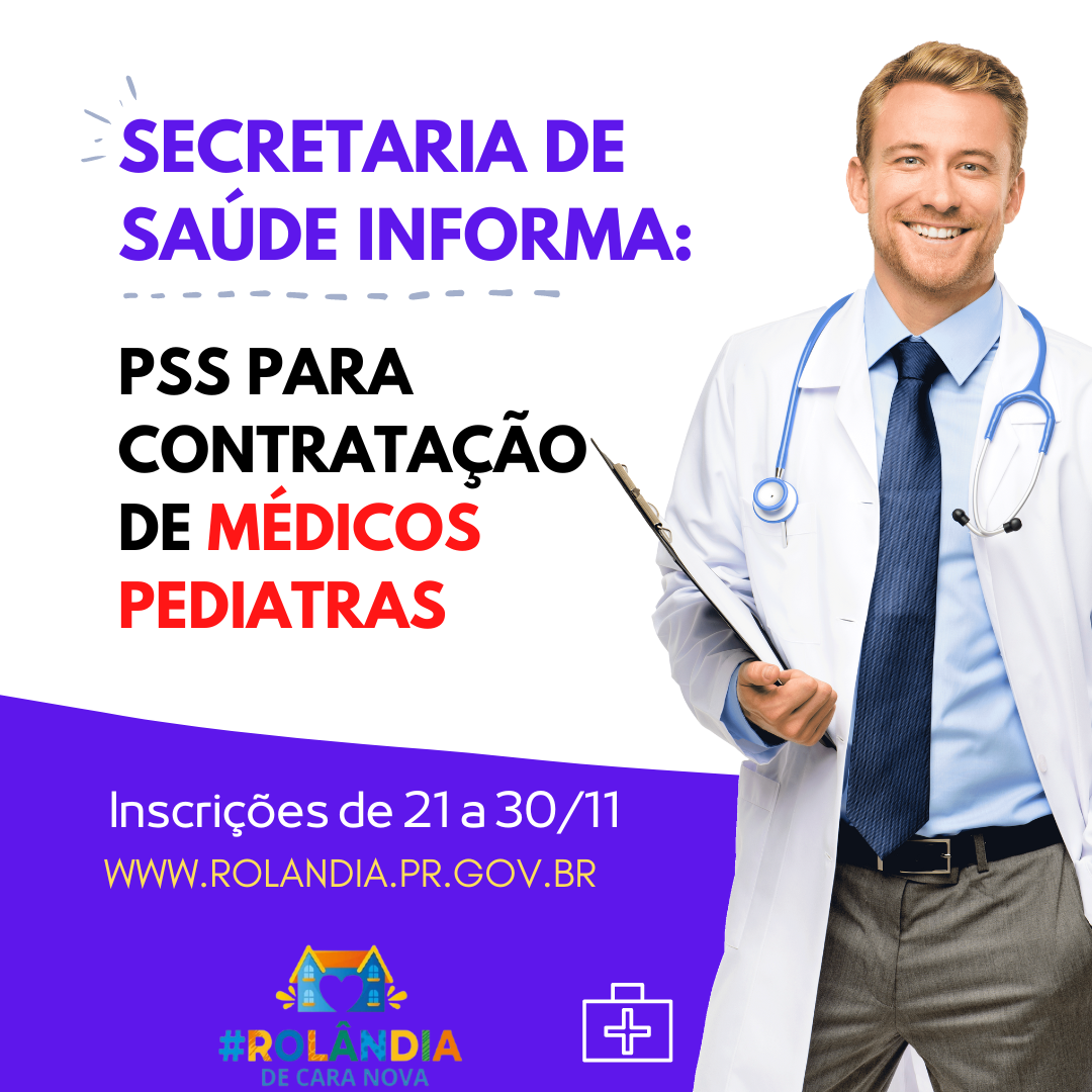 SECRETARIA DE SAÚDE ABRE PSS PARA CONTRATAR PEDIATRASAs inscrições do PSS de que se trata deste Edital, para contratar MÉDICOS PEDIATRAS, serão realizadas a partir das 13h do dia 21 de novembro de 2022, até as 22h do dia 30 de novembro de 2022,...