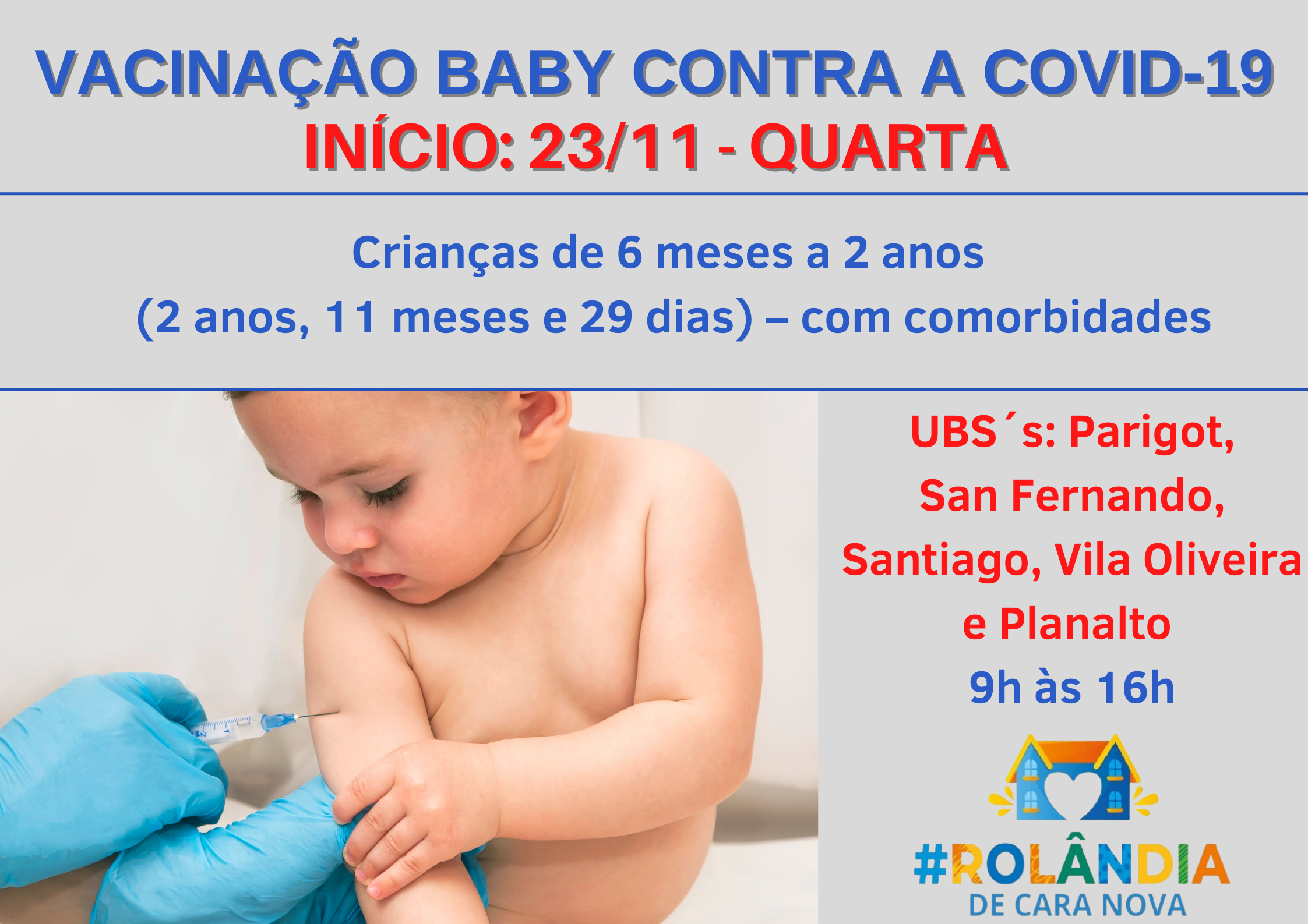 ROLÂNDIA VAI INICIAR A VACINAÇÃO BABY CONTRA A COVID-19 NA QUARTA-FEIRAA Secretaria de Estado da Saúde (Sesa) vai encaminhar ao município a vacina do tipo "baby" do imunizante Pfizer BioNTech, para o início do esquema vacinal, com a primeir...