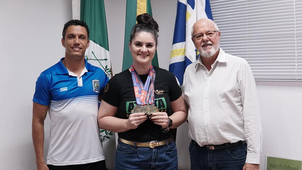AILTON MAISTRO RECEBE ROLANDENSE, CAMPEÃ ESTADUAL DE POWERLIFTINGO prefeito Ailton Maistro e o secretário de Esportes Victor Hugo Pascolatti, receberam nesta quinta-feira, no gabinete, a rolandense Ana Mohr, que conquistou o título de campeão par...
