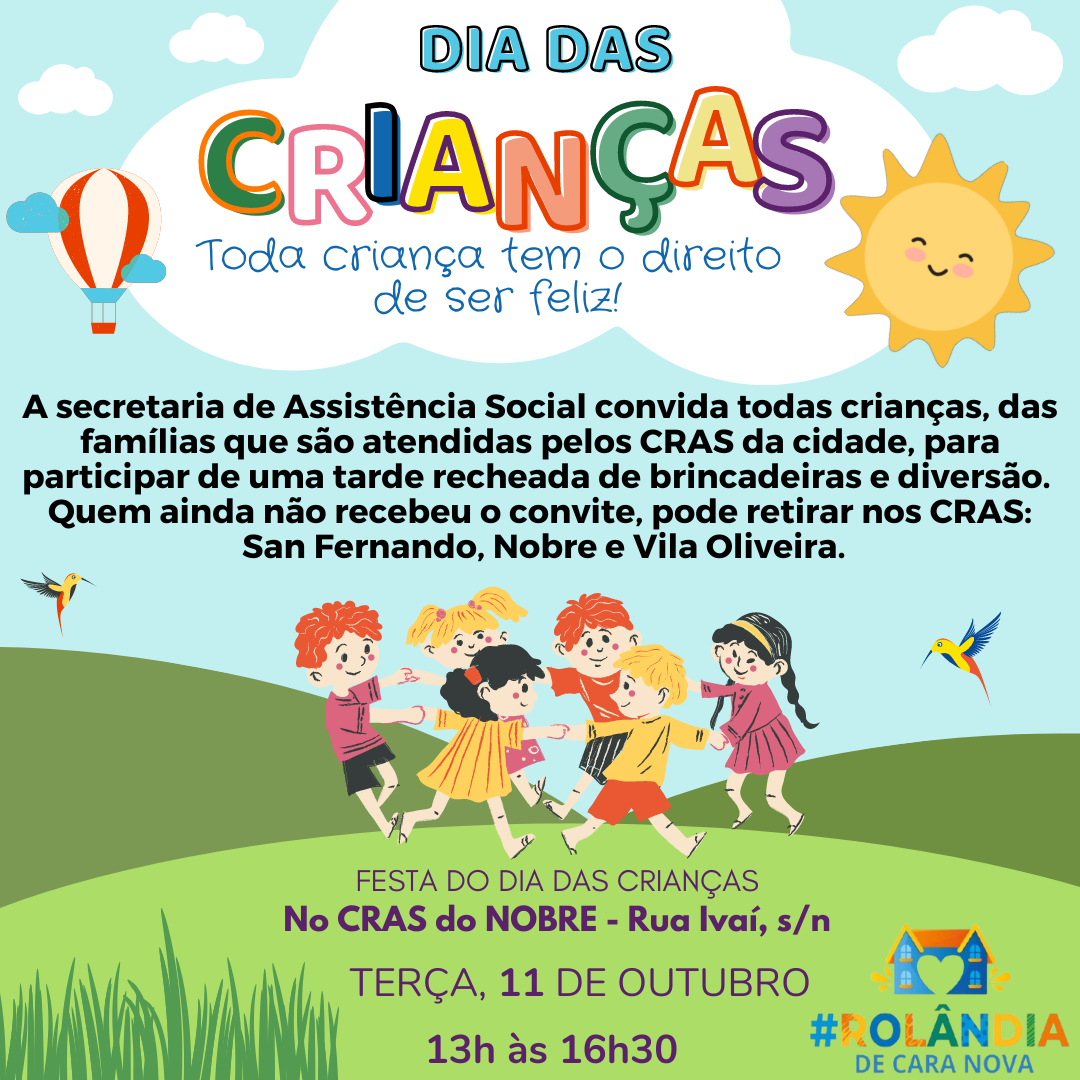 FESTA DO DIA DAS CRIANÇAS DA ASSISTÊNCIA SOCIALA secretaria de Assistência Social convida todas crianças, das famílias que são atendidas pelos CRAS da cidade, para participar de uma tarde recheada de brincadeiras e diversão. Quem ainda não re...