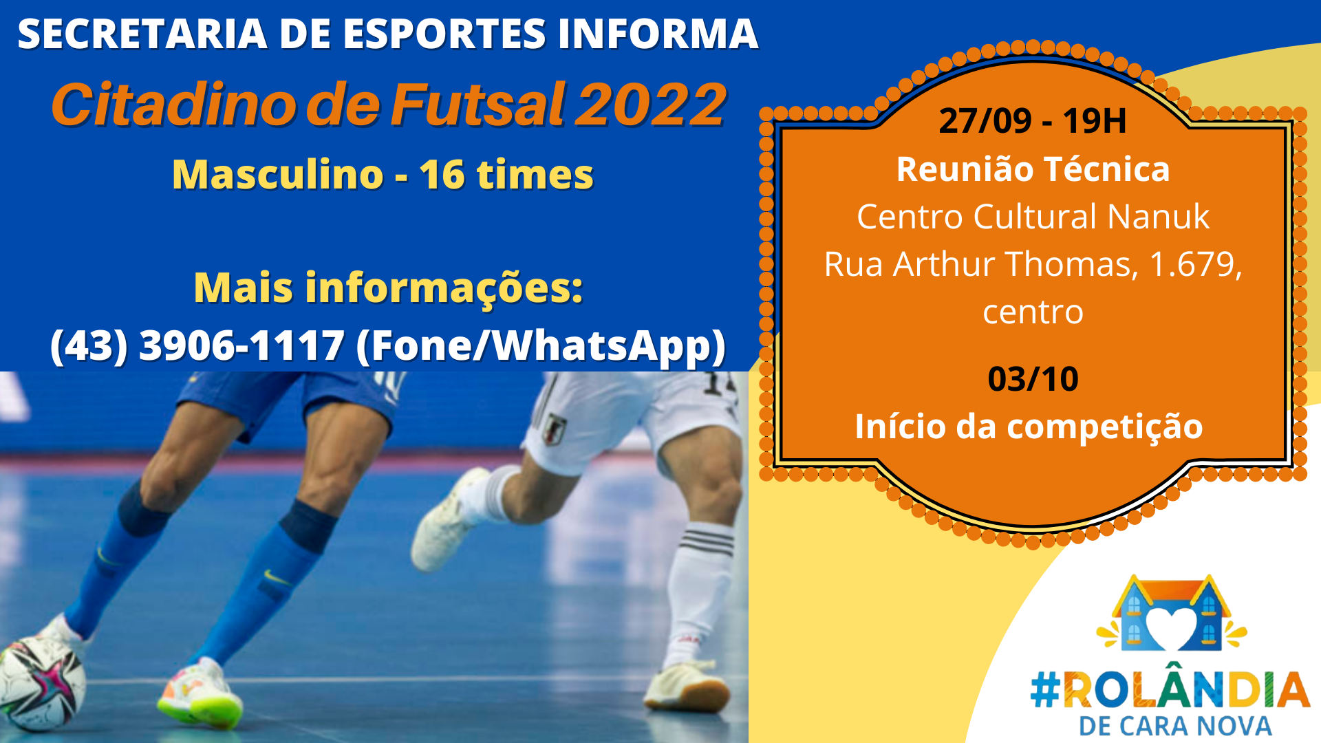 16 TIMES SE INSCREVERAM NO CITADINO DE FUTSAL 2022A secretaria de Esportes informa que 16 times se inscreveram e vão participar do torneio, no masculino. No feminino, nenhuma inscrição. Reunião Técnica 27/09 -19h no Centro Cultural Nanuk - rua ...