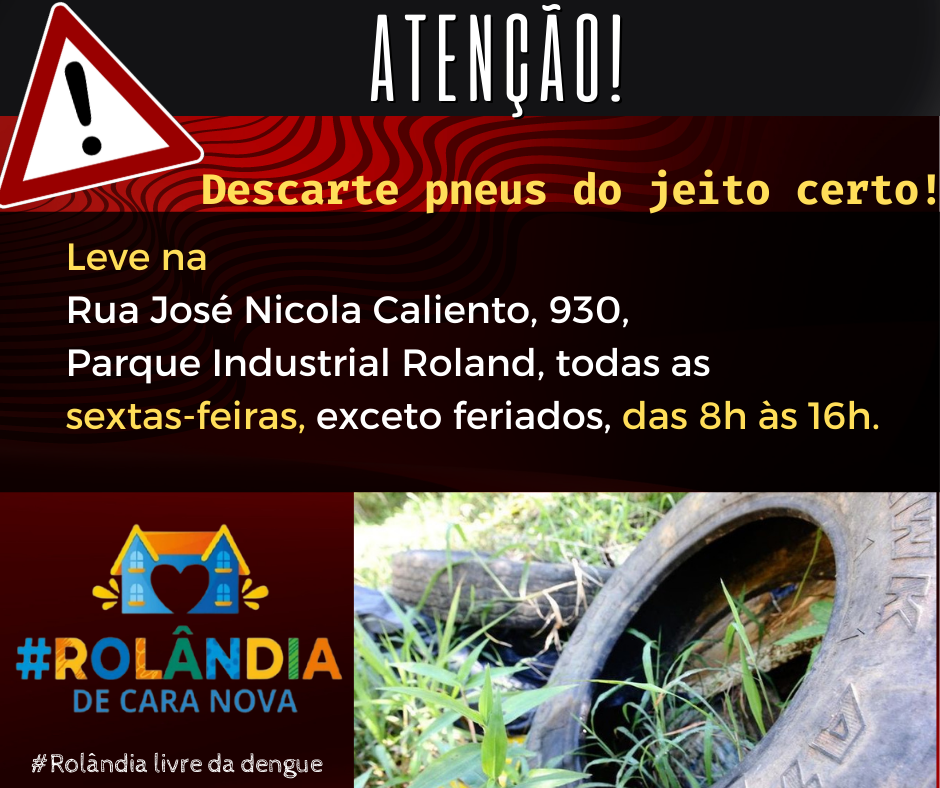 SEXTA-FEIRA É DIA DE LEVAR SEU PNEU INSERVÍVEL AO LOCAL CORRETO DE DESCARTE!A Secretaria de Saúde informa o cidadão que ele deve ajudar no combate a dengue, descartando corretamente os pneus inservíveis.Certifique-se que o mesmo esteja limpo e s...