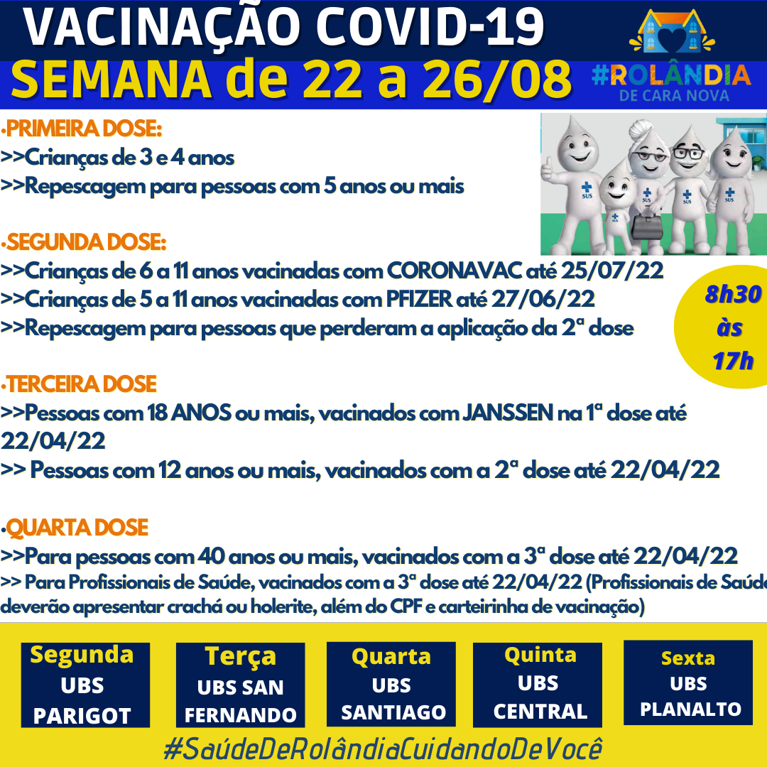 UBS PLANALTO E UBS SANTIAGO ESTARÃO ABERTAS NESTE SÁBADO PARA CAMPANHA DE VACINAÇÃO EM CRIANÇAS E ADOLESCENTESRolândia participa da Campanha Nacional de Vacinação contra a poliomielite (para crianças menores de cinco anos) e Multivacinação...