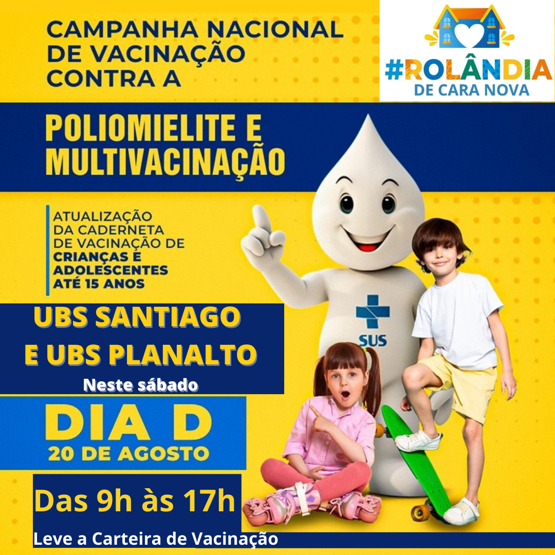 UBS PLANALTO E UBS SANTIAGO ESTARÃO ABERTAS NESTE SÁBADO PARA CAMPANHA DE VACINAÇÃO EM CRIANÇAS E ADOLESCENTESRolândia participa da Campanha Nacional de Vacinação contra a poliomielite (para crianças menores de cinco anos) e Multivacinação...