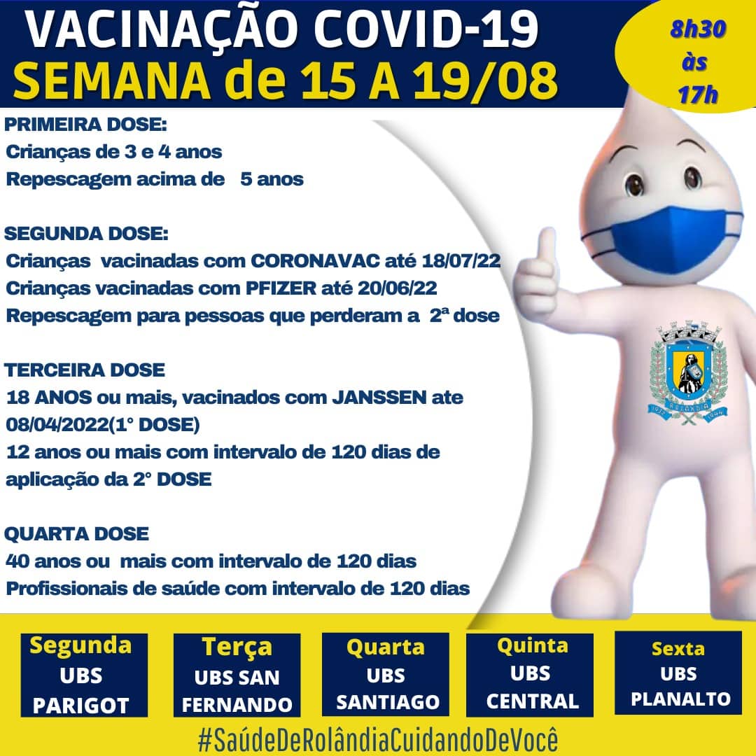 PROGRAMAÇÃO SEMANAL DE VACINAÇÃO CONTRA A COVID-1915 A 19 DE AGOSTOVem vacinar!...