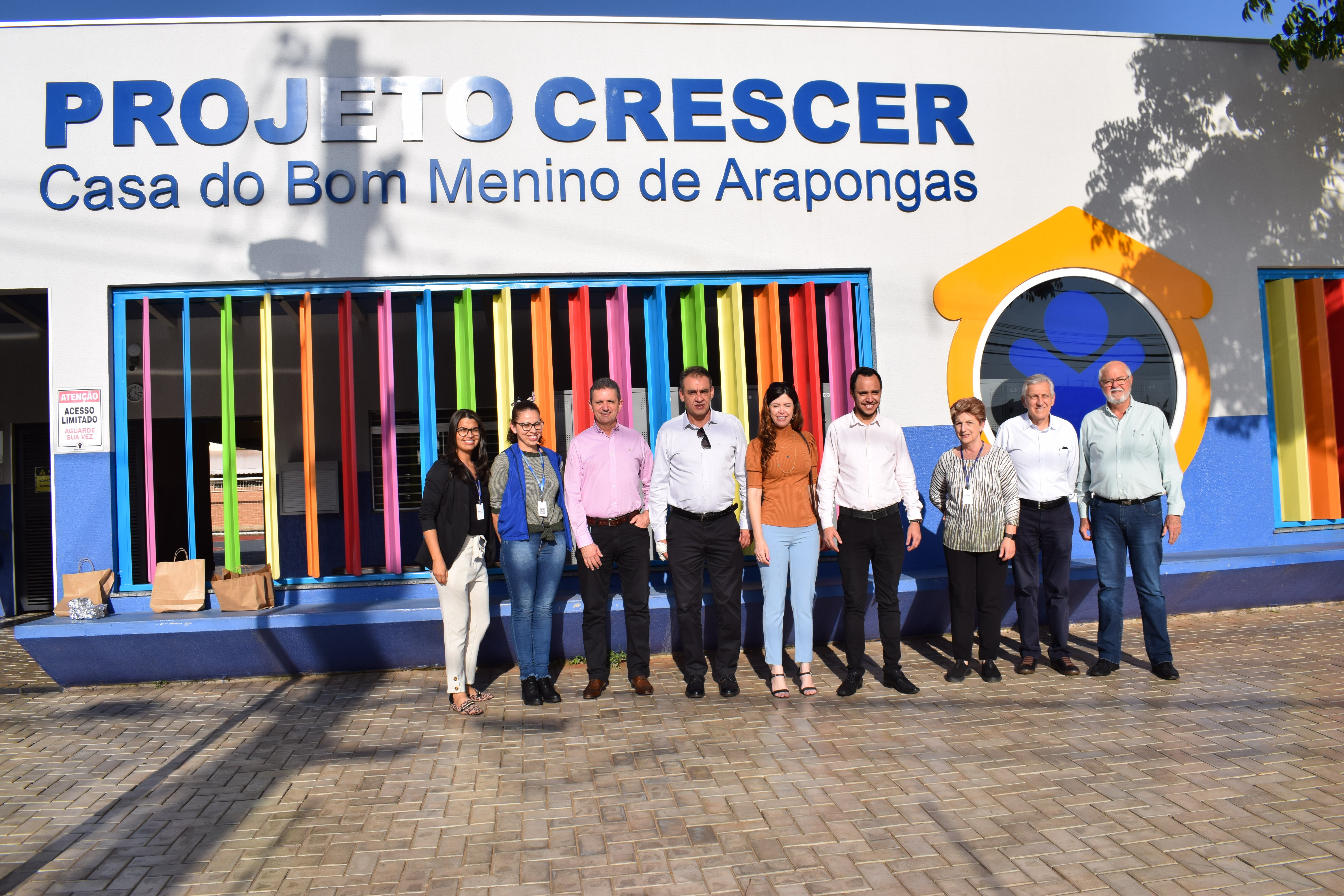 PREFEITO E SECRETÁRIOS MUNICIPAIS CONHECEM O TRABALHO DA "CASA DO BOM MENINO", EM ARAPONGASO prefeito Ailton Maistro, o secretário de Assistência Social Diego Silva, a secretária de Educação Leise de Moraes Camargo e o secretário de Desenvolvi...