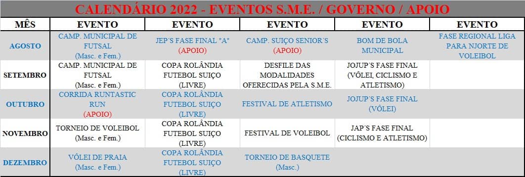 SECRETARIA DE ESPORTES PUBLICA O CALENDÁRIO DE EVENTOS ATÉ O FIM DO ANO; INSCRIÇÕES PARA O "BOM DE BOLA" ATÉ QUINTAA secretaria de Esportes publicou o calendário de eventos até o fim do ano (veja foto). Além disso, informa que estão abertas...