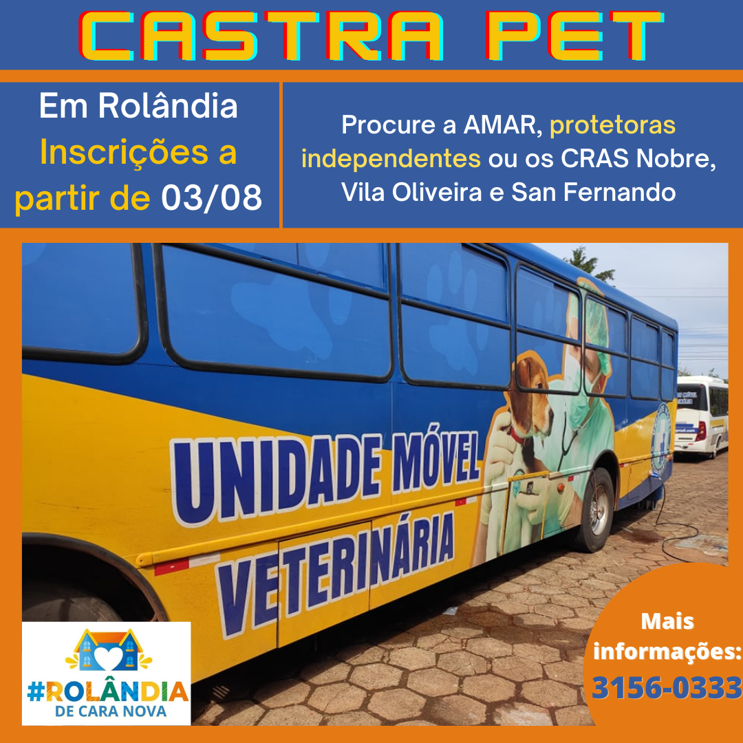 CASTRAPET EM ROLÂNDIA ABRE PROCESSO DE SELEÇÃO DE ANIMAIS, COM 700 VAGASA secretaria de Agricultura e Meio Ambiente (SEMMA) informa que o segundo ciclo do Programa Permanente de Esterilização de Cães e Gatos (CastraPet Paraná), da Secr...