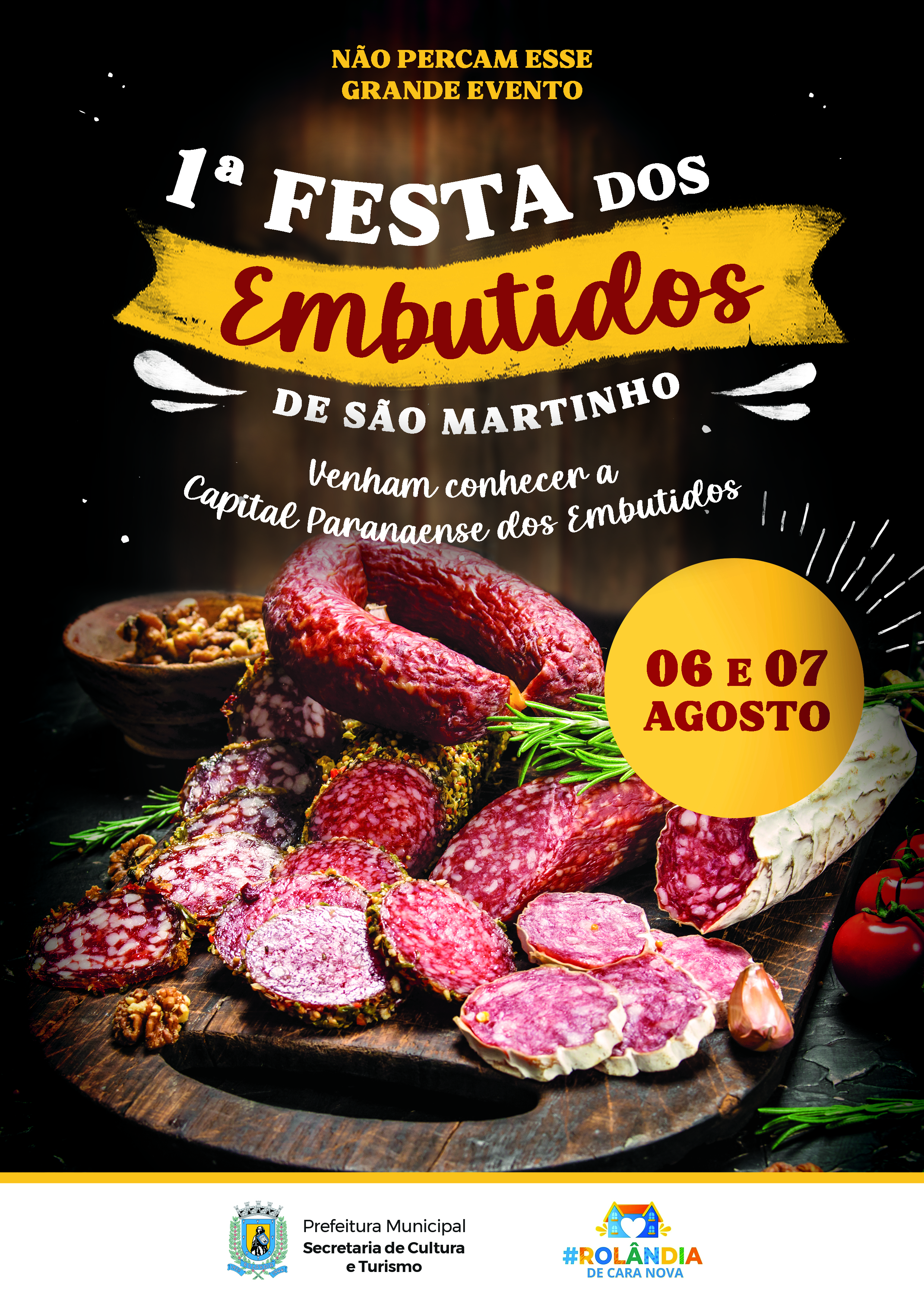 VEM AÍ A 1º FESTA DOS EMBUTIDOS DE SÃO MARTINHOA secretaria de Cultura e Turismo convida a população a prestigiar a "1º Festa dos Embutidos", no distrito de São Martinho. A festa, na "capital paranaense dos embutidos", será no primeiro fim de...