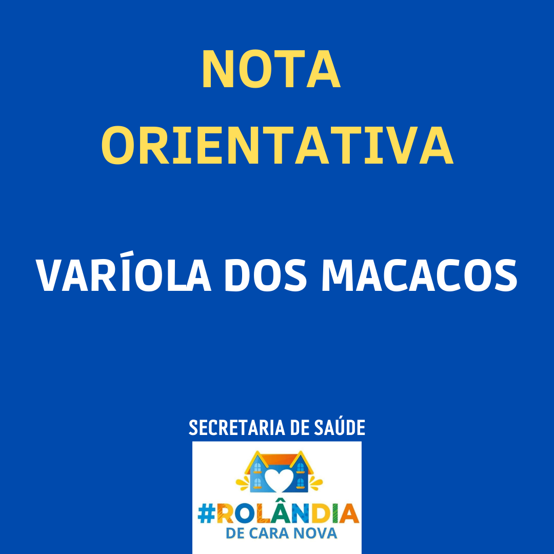 NOTA ORIENTATIVA VARÍOLA DOS MACACOSA secretaria de Saúde de Rolândia informa a população sobre a varíola dos macacos. Definição:A Monkeypox, popularmente conhecida como Varíola dos Macacos, é uma doença zoonótica viral causada pelo vír...