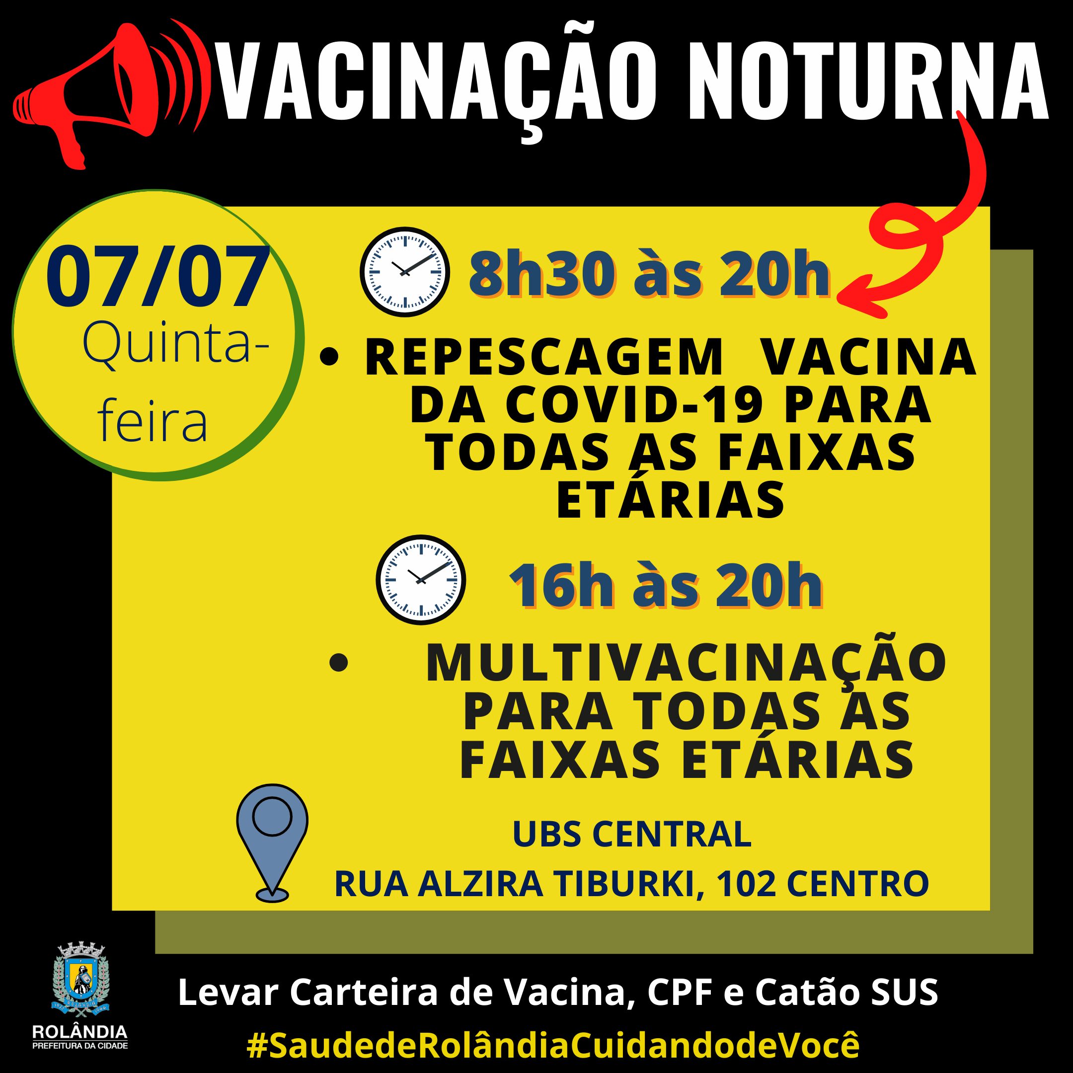 QUINTA-FEIRA, DIA 7, VACINAÇÃO CONTRA A COVID-19 E CONTRA A GRIPE, ATÉ 20H, NA UBS CENTRAL...