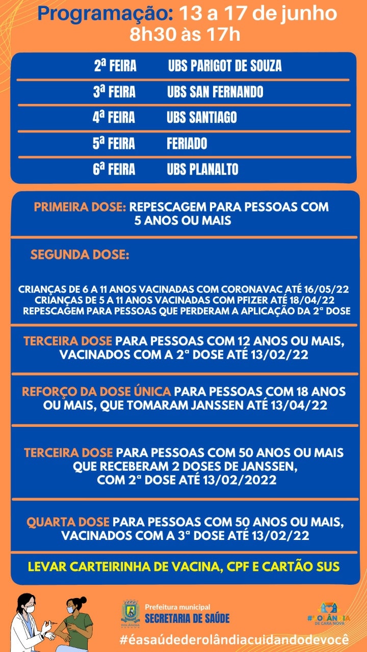 *CRONOGRAMA DE VACINAÇÃO COVID-19| 13/06 A 17/06Confira o cronograma pra não perder o dia de vacinar8:30 às 17:00TODOS OS DIAS #SECSAUDE#SaúdedeRolândiaCuidandodeVocê...