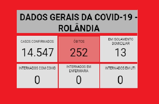 BOLETIM COVID-19 - 19.04.2022 - 15h30A secretaria municipal de Saúde informa sobre os casos de covid-19. Na atualização do boletim, três contaminações e um paciente curado. Rolândia tem atualmente 13 pacientes com covid-19, todos em isolamen...